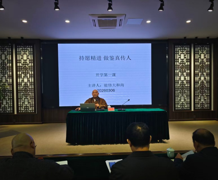 3月6日,新学期开学第一天,鉴真佛教学院举办《开学第一课》活动,院长能修大和尚作《持愿精进,做鉴真传人》主题报告。本次活动是学院首次举办,今后将常态化、制度化安排,于每学期开学第一天进行。