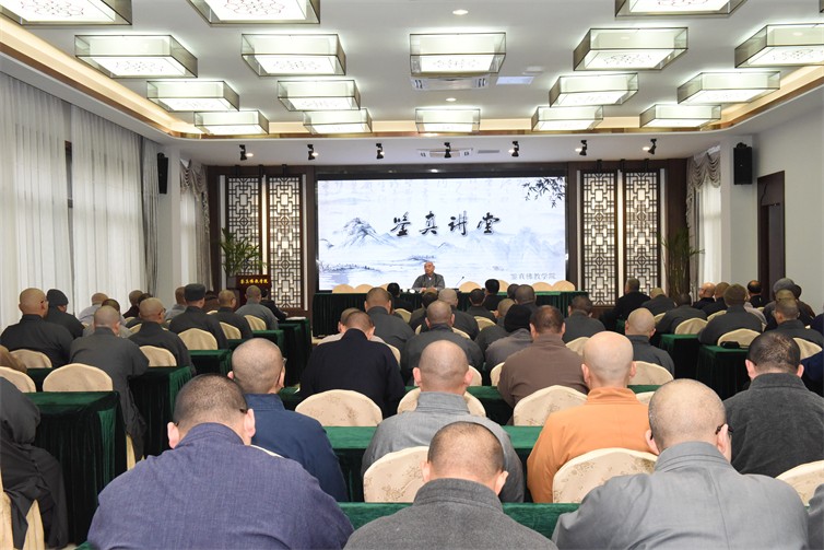 12月19日下午,院长能修,市民宗局一级调研员徐永泰、副局长赵立志,市佛协秘书长徐永斌共同为“鉴真讲堂”揭牌。能修大和尚以“学法规、守戒律、重修为、树形象——新时代佛教清净的重要要求”为主题作首场报告 ,介绍了全国宗教界开展教育活动的时代背景与重大意义,阐释了教育活动的深刻内涵与本质要求,对广大师生职工精进修为、恪守戒律、依法行持、正信正行提出了殷切希望。首场报告,大家深感收获满满、信心满满!表示要积极行动起来,不忘初心,重头再来,以弘法为家务,以利生为事业,勇猛精进,努力把鉴真学院和大明寺建设得好上加好、越来越好,为佛教事业健康传承作出新贡献。